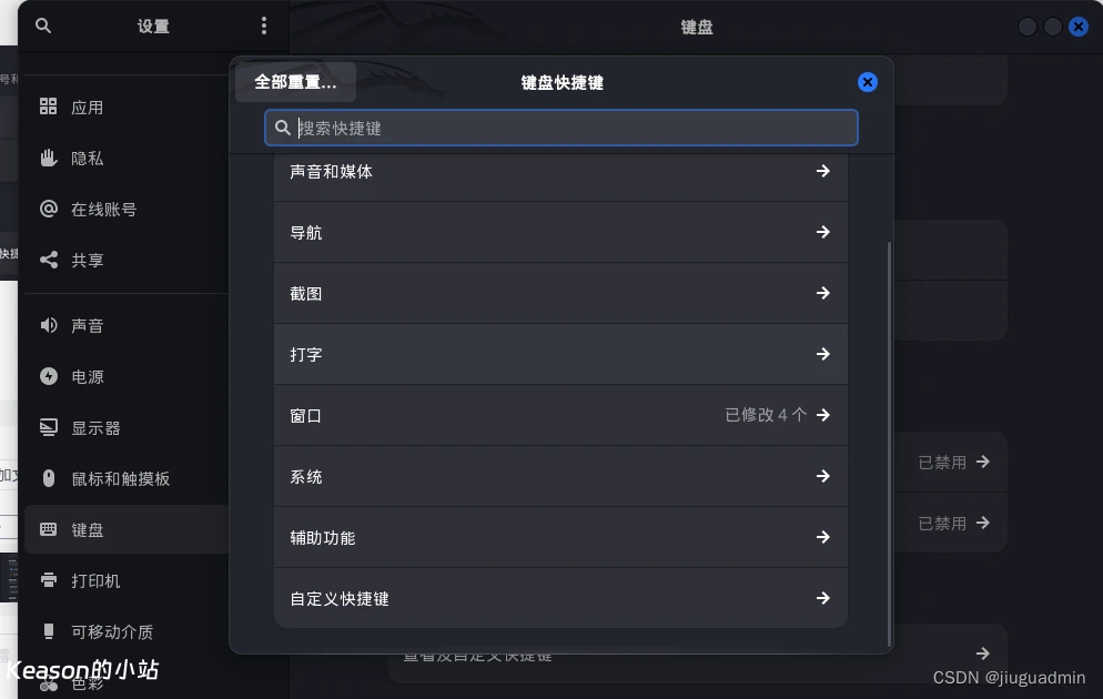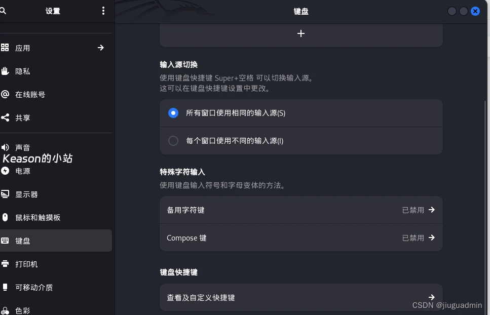 设置>键盘>键盘快捷键