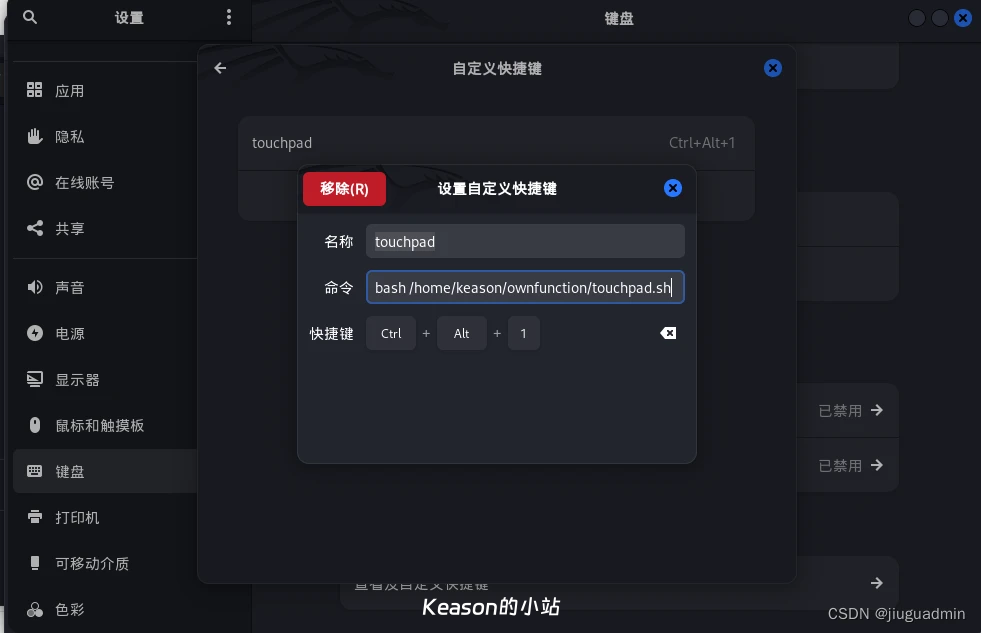 名称随意,命令为bash /你的脚本 快捷键自定义 那么功能就成功实现了